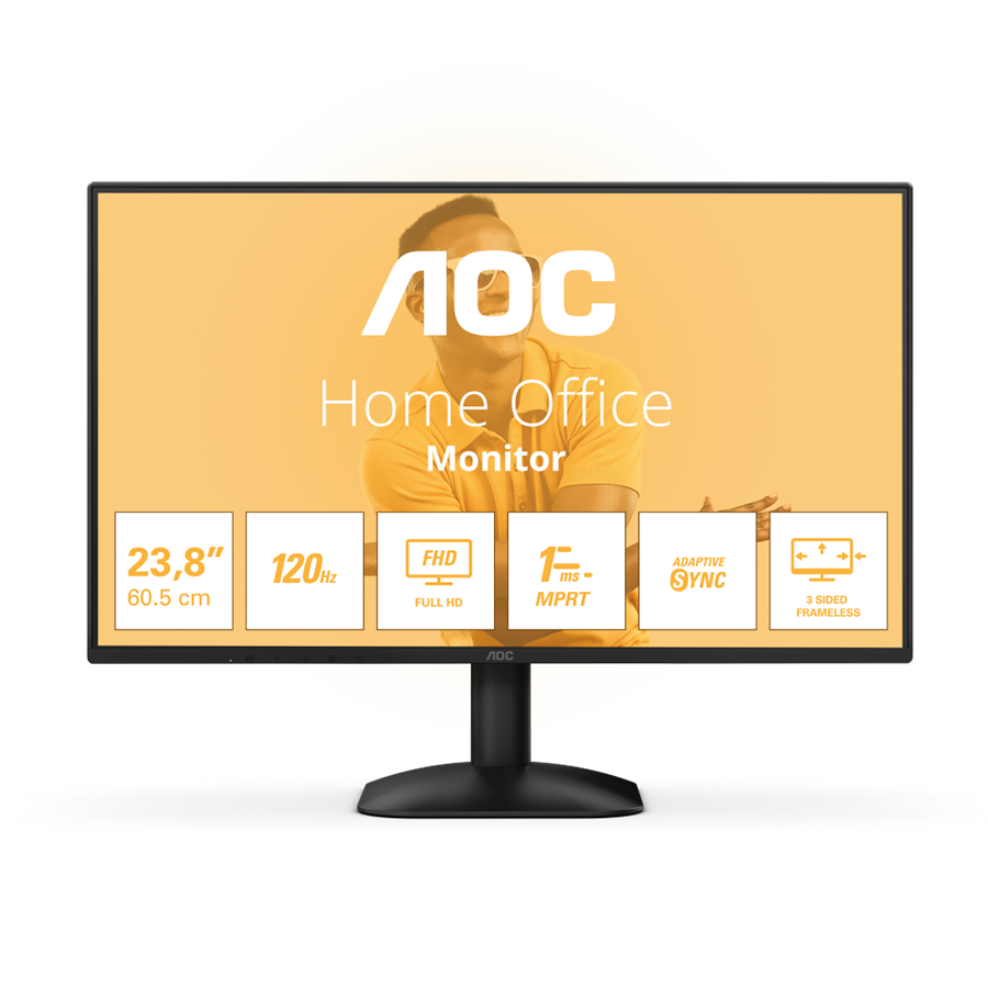 MONITOR AOC 24B3QA2 – 24 Inch Full HD Monitor, 120Hz, Adaptive Sync, Speaker (1920 x 1080, 1 x D-Sub, 1 x HDMI 1.4, 1 x DisplayPort 1.2) Black